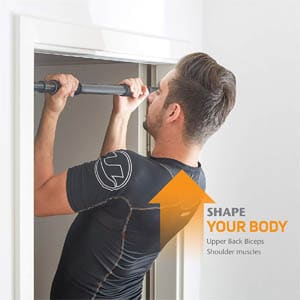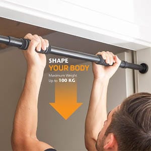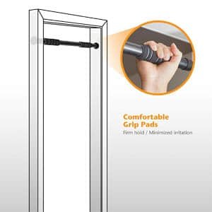 La barra fija multifuncional de Ultrasport se coloca en el marco de la puerta y agarra sobre la zona superior de la puerta y laterales. Este tipo de barras tienen la ventaja de que no necesitas hacer agujero en las paredes. Otro plus es lo cómodas que son para cambiarlas de ubicación dentro de casa.